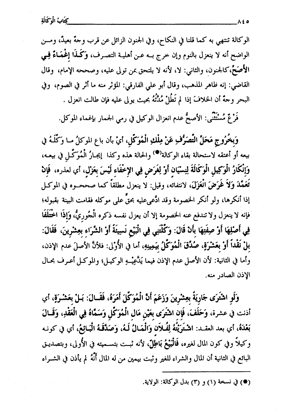 (•) في نسخة (1) و (3) بدل الوكالة: الولاية.