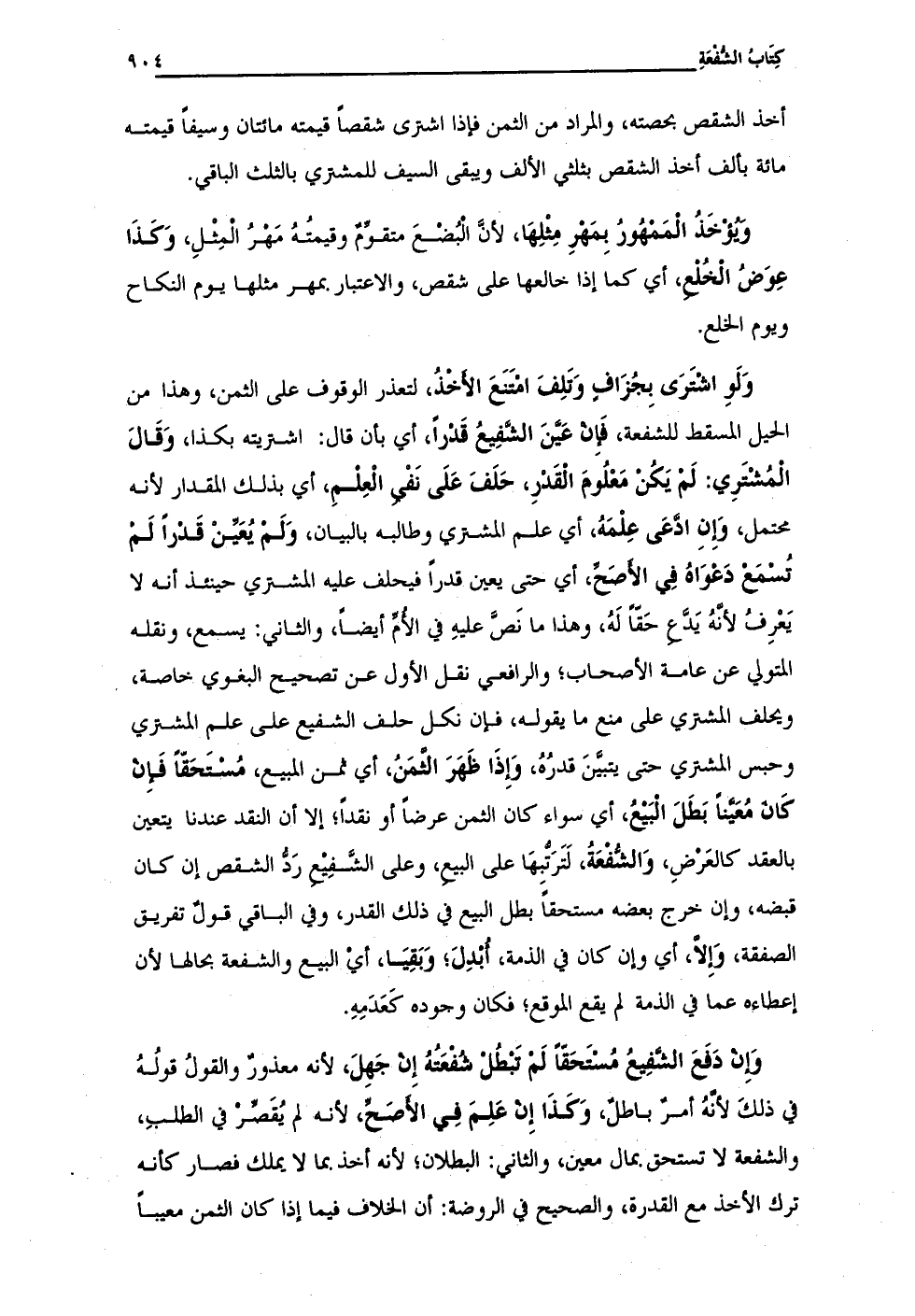 وَلَو اشْتَرَى بِجُزَافٍ وَتَلِفَ امْتَنَعَ الأَخْذُ، لتعذر الوقوف على الثمن، وهذا من الحيل المسقط للشفعة، فَإِنْ عَيَّنَ الشَّفِيعُ قَدْرًا، أي بأن قال: اشتريته بكذا، وَقَال الْمُشْتَرِي: لَمْ يَكُنْ مَعْلُومَ الْقَدْرِ، حَلَفَ عَلَى نَفْيِ الْعِلْمِ، أي بذلك المقدار لأنه محتمل، وَإِنِ ادَّعَى عِلْمَهُ، أي علم المشتري وطالبه بالبيان، وَلَمْ يُعَيِّنْ قَدْرًا لَمْ تُسْمَعْ دَعْوَاهُ فِي الأَصَحِّ، أي حتى يعين قدرًا فيحلف عليه المشتري حينئذ أنه لا يَعْرِفُ لأنَّهُ يَدَّعِ حَقًّا لَهُ، وهذا ما نَصَّ عليهِ في الأُمِّ أيضًا، والثاني: يسمع، ونقله المتولي عن عامة الأصحاب؛ والرافعي نقل الأول عن تصحيح البغوي خاصة، ويحلف المشتري على منع ما يقوله، فإن نكل حلف الشفيع على علم المشتري وحبس المشتري حتى يتبيَّنَ قدرُهُ، وَإِذَا ظَهَرَ الثَّمَنُ، أي ثمن المبيع، مُسْتَحَقًّا فَإِنْ كَانَ مُعَيَّنًا بَطَلَ الْبَيعُ، أي سواء كان الثمن عرضًا أو نقدًا؛ إلا أن النقد عندنا يتعين بالعقد كالعَرْضِ، وَالشُّفْعَةُ، لَتَرَتُّبهَا على البيعِ، وعلى الشَّفِيعِ رَدُّ الشقص إن كان قبضه، وإن خرج بعضه مستحقًا بطل البيع في ذلك القدر، وفي الباقي قولٌ تفريق الصفقة، وَإِلَّا، أي وإن كان في الذمة، أُبْدِلَ؛ وَبَقِيَا، أي البيع والشفعة بحالها لأن إعطاءه عما في الذمة لم يقع الموقع؛ فكان وجوده كَعَدَمِهِ.