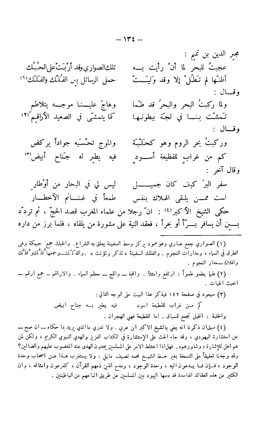 عجبت للبحر لما أنْ رأيتُ بهِ ... تلك الصواري وقد أرْمتْ على الحُبُكِ