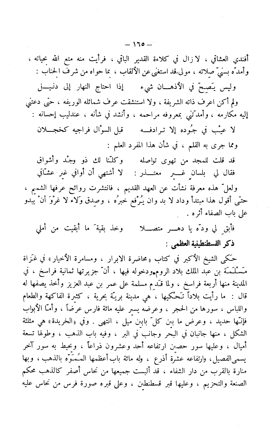 أفندي العشاقي، لا زال في كلاءة القدير الباقي، فرأيت منه مَتَّعه الله بحياته وأمدَّه بسنيِّ صلاته، مولى قد استغنى عن الألقاب، بما حواه من شرف الجناب: