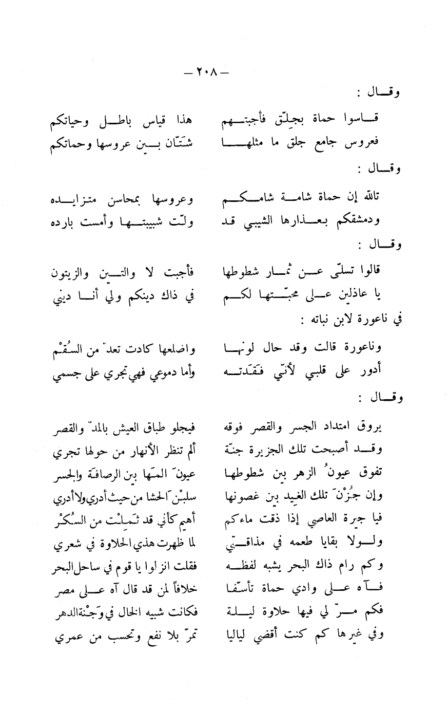 قاسوا حماةَ بجلّق فأجبتهم ... هذا قياسٌ باطل وحياتكمْ