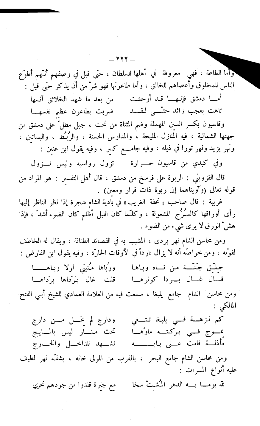 ومن محاسن الشام نهر بردى المشبب به في القصائد الطنانة، ويقال له الخاطف لقوّته، ومن خواصه أنه لا يزال بارداً في الأوقات الحارَّة، وفيه يقول ابن الفارض: