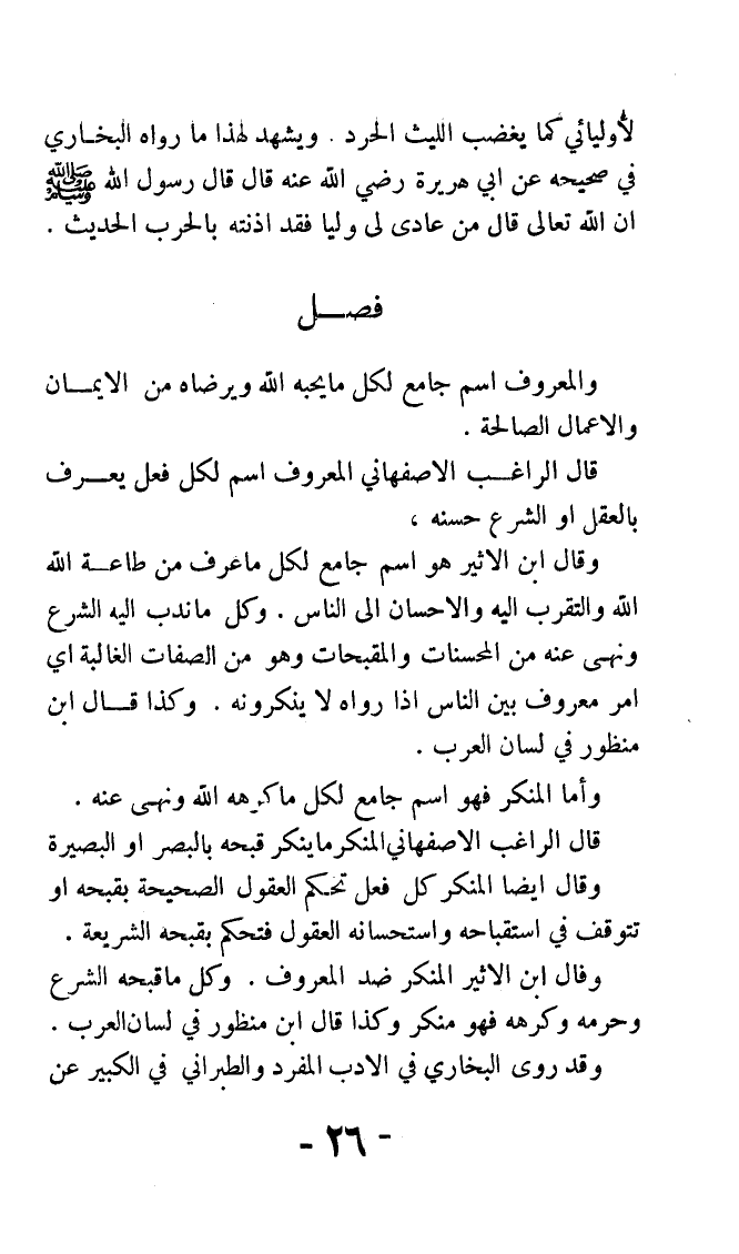 وقال أيضًا: المنكر كل فعل تحكم العقول الصحيحة بقبحه أو تتوقف في استقباحه واستحسانه العقول, فتحكم بقبحه الشريعة.