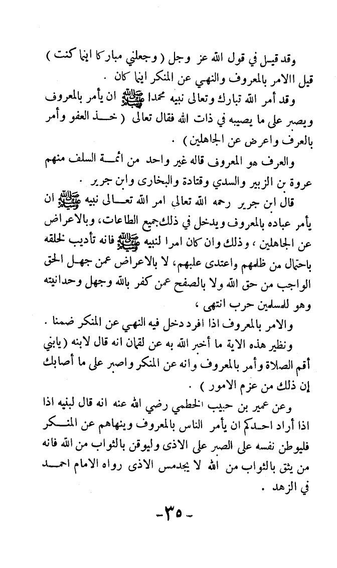 وقد قيل في قول الله عز وجل {وَجَعَلَنِي مُبَارَكًا أَيْنَ مَا كُنْتُ} قيل: الأمر بالمعروف والنهي عن المنكر أينما كان.