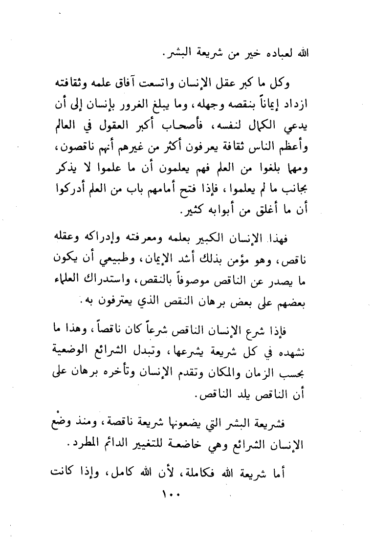 فشريعة البشر التي يضعونها شريعة ناقصة، ومنذ وضع