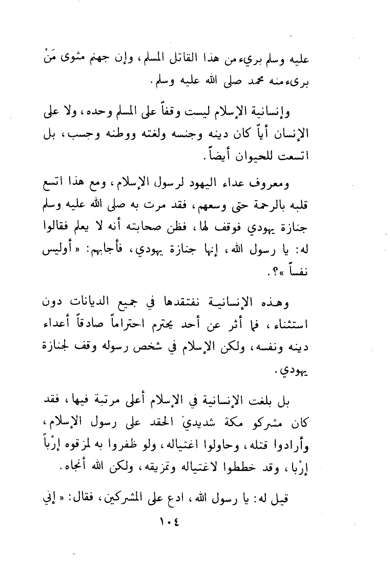 دينه ونفسه، ولكن الإسلام في شخص رسوله - صلى الله عليه وسلم - وقف لجنازة يهودي.
