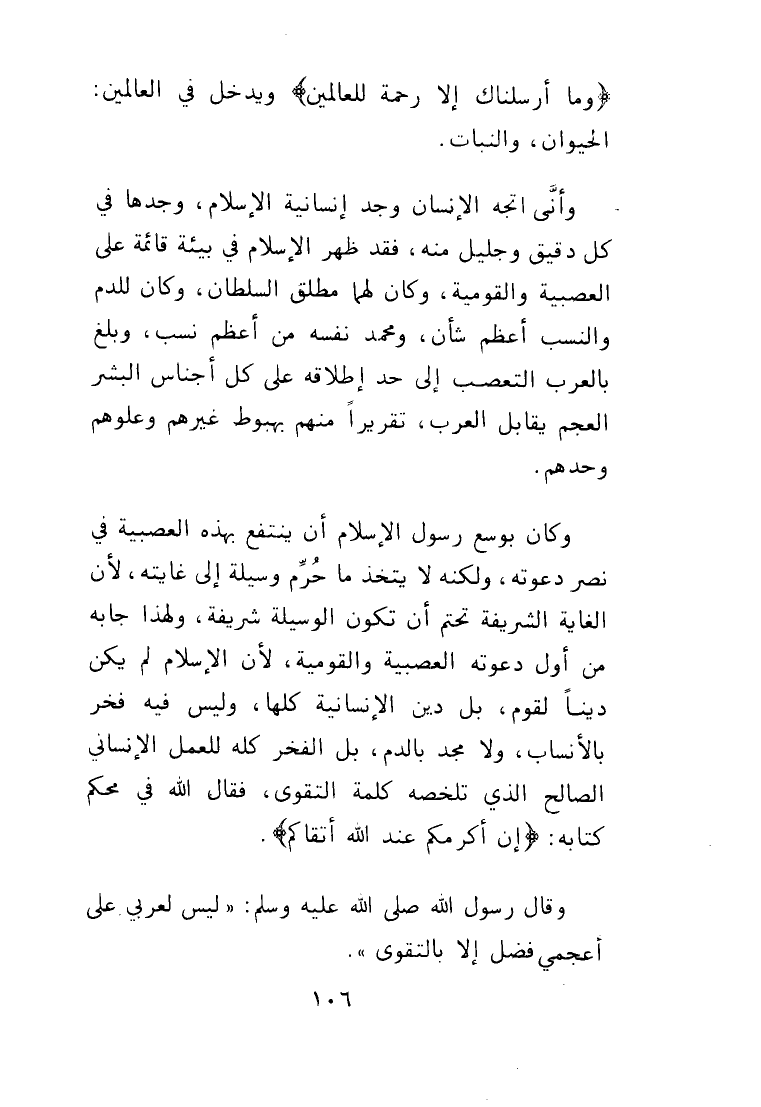 " ليس لعربي على أعجمي فضل إلا بالتقوى".