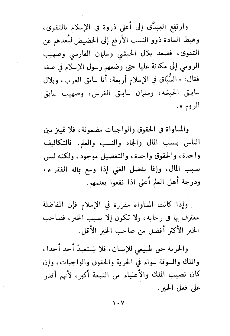 والملك والسوقة سواء في الحرية والحقوق والواجبات، وإن