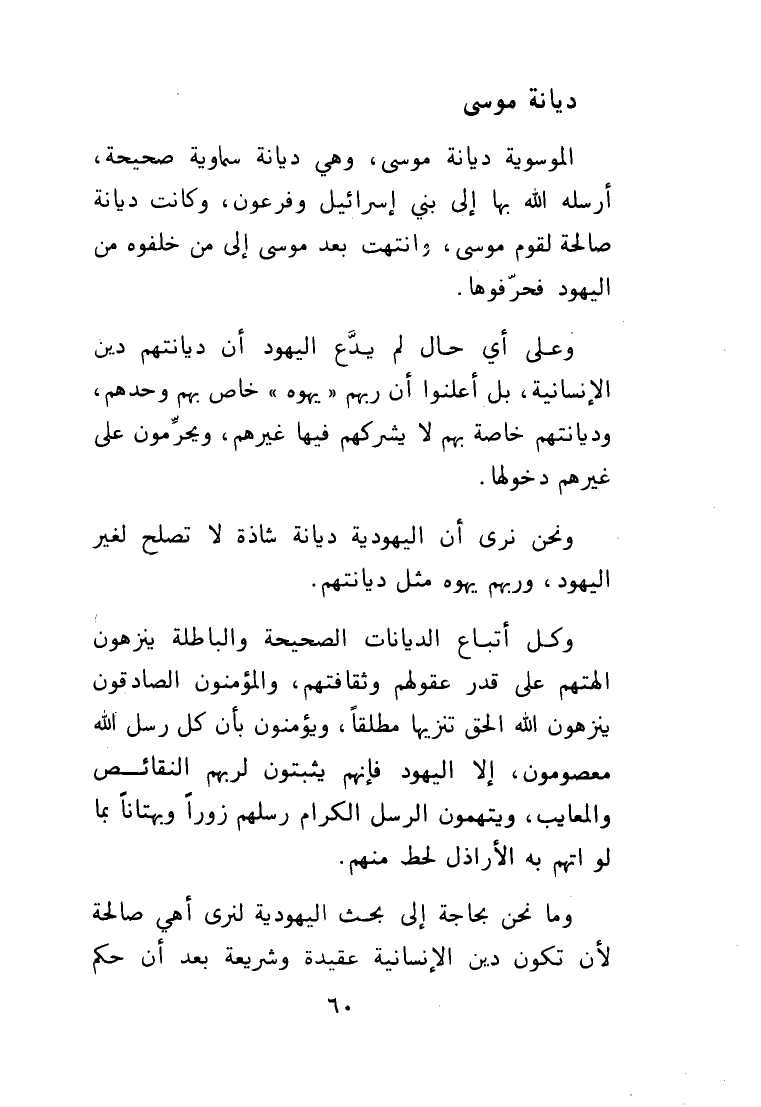 ونحن نرى أن اليهودية ديانة شاذة لا تصلح لغير