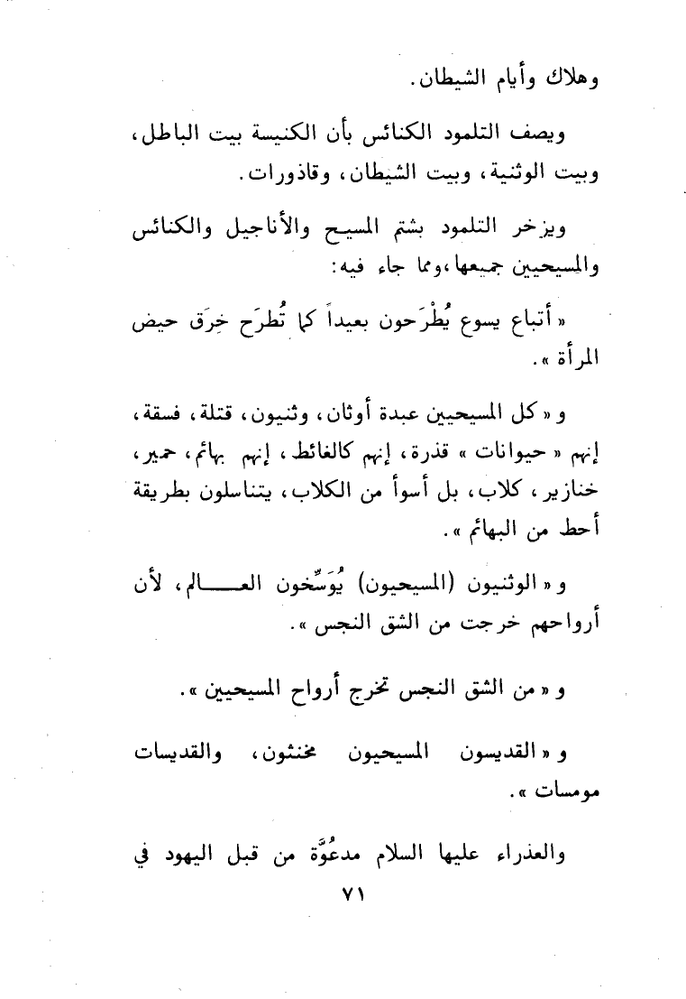 و" كل المسيحيين عبدة أوثان، وثنيون، قتلة، فسقة،