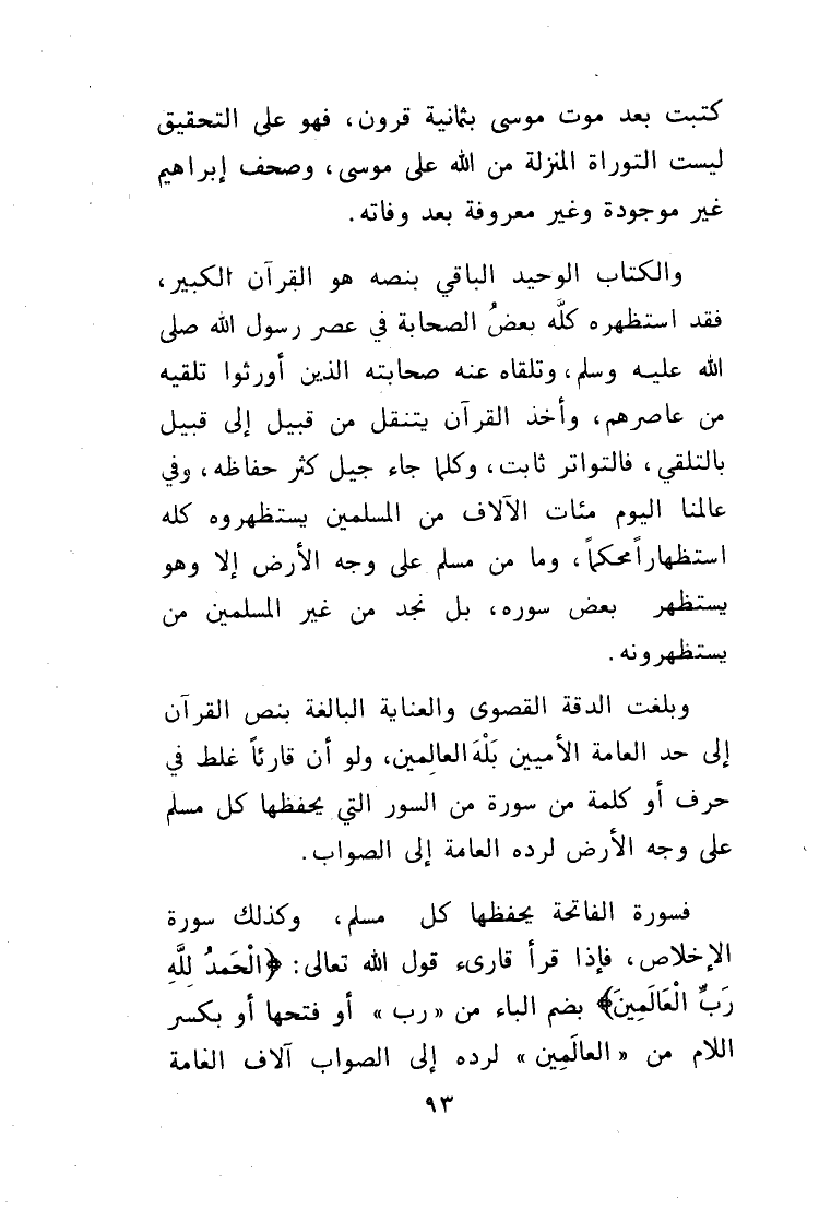 والكتاب الوحيد الباقي بنصه هو القرآن الكريم،