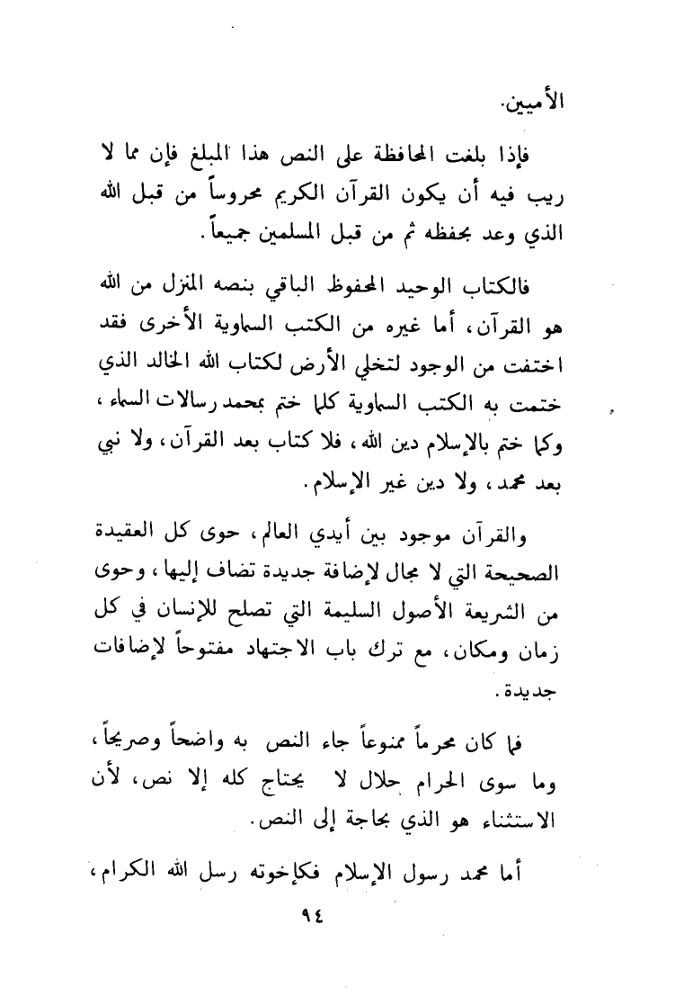 ختمت به الكتب السماوية كما ختم بمحمد - صلى الله عليه وسلم - رسالات السماء،