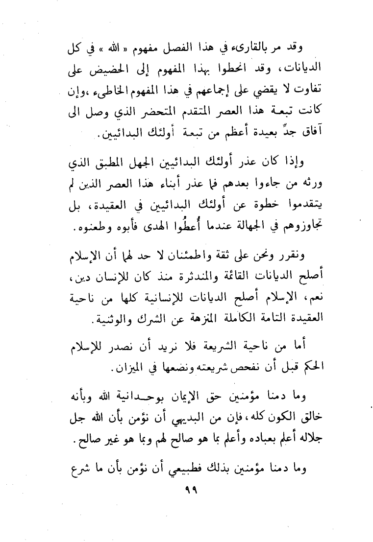 ونقرر ونحن على ثقة واطمئنان لا حدَّ لهما أن الإسلام