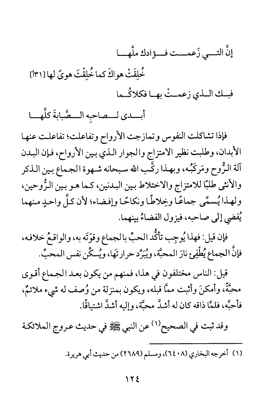 فان ا لجماع بطفئ نار المحبة، ويبرد حرارتها، ويسكن نفس المحب.