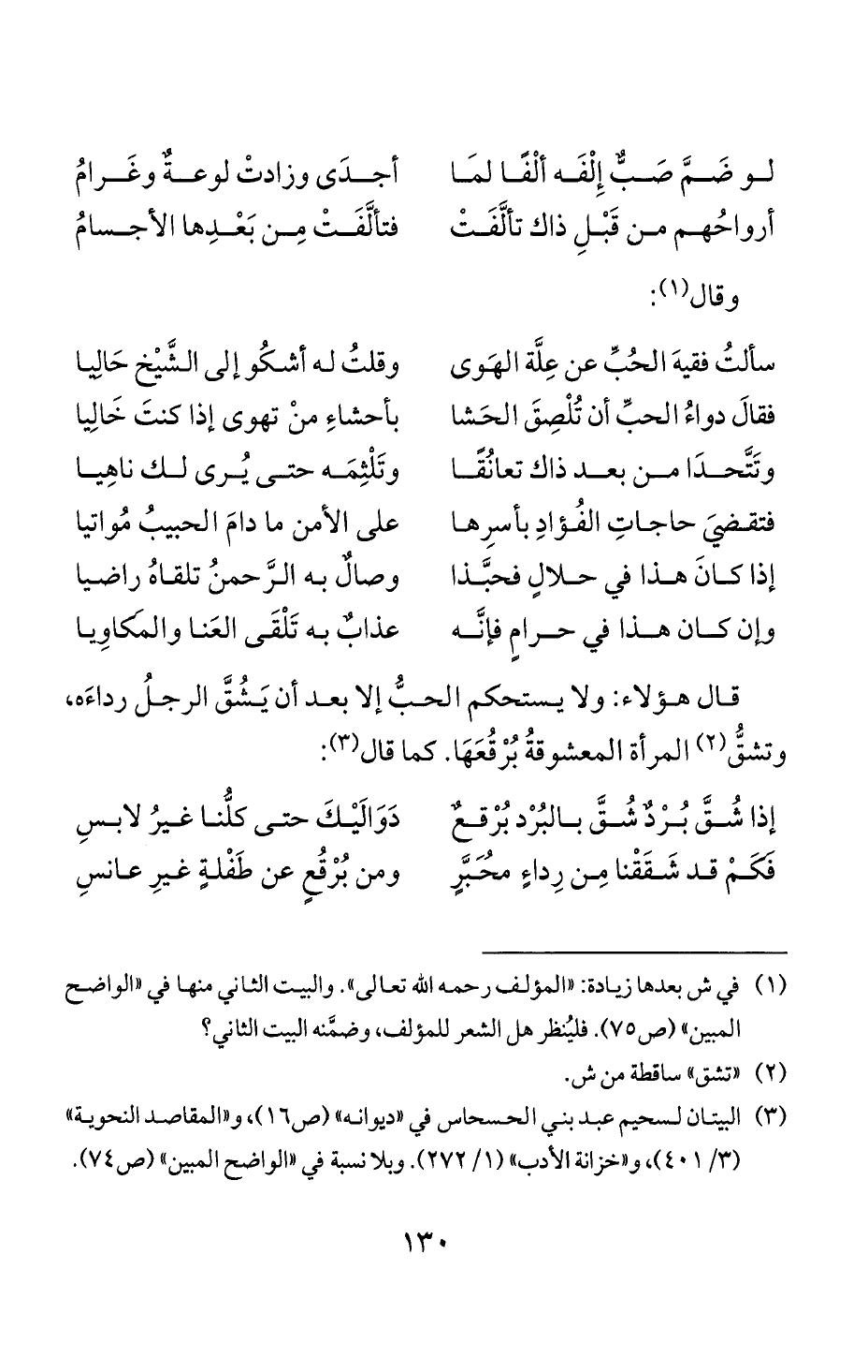 سألت فقيه الحب عن علة الهوى وقلت له أشكو إلى الشيخ حاليا