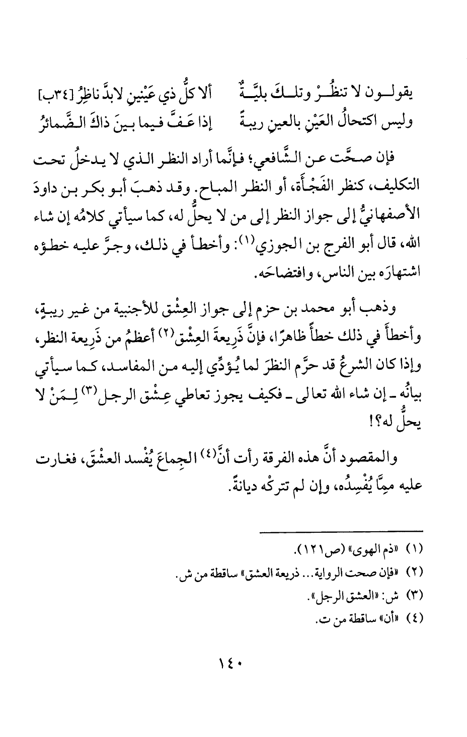 وذهب أبو محمد بن حزم إلى جواز العشق للأجنبية من غير ريبة،
