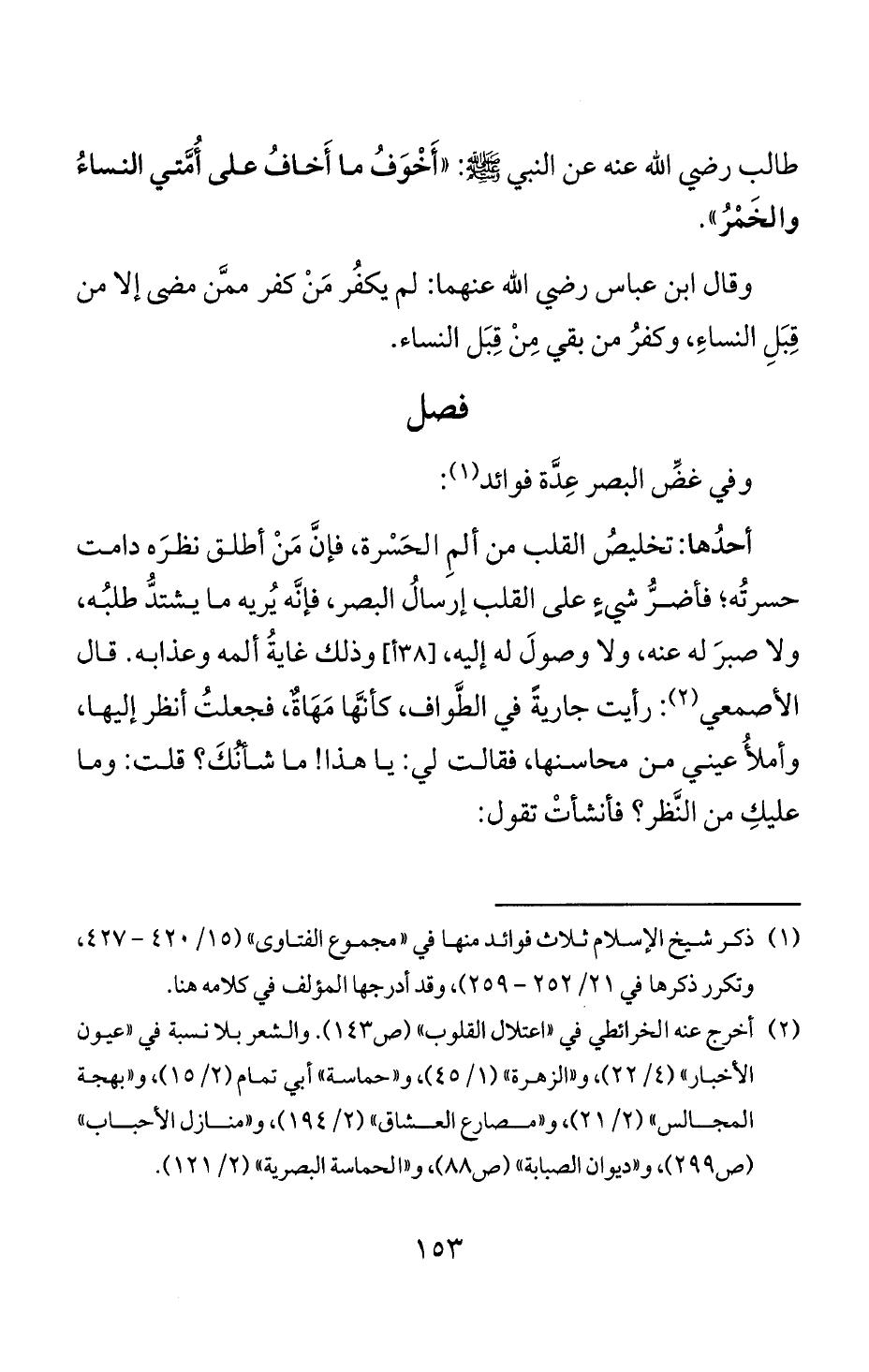 طالب رضي الله عنه عن النبي لمجيم: " أخوف ما أخاف على أمتي النساء