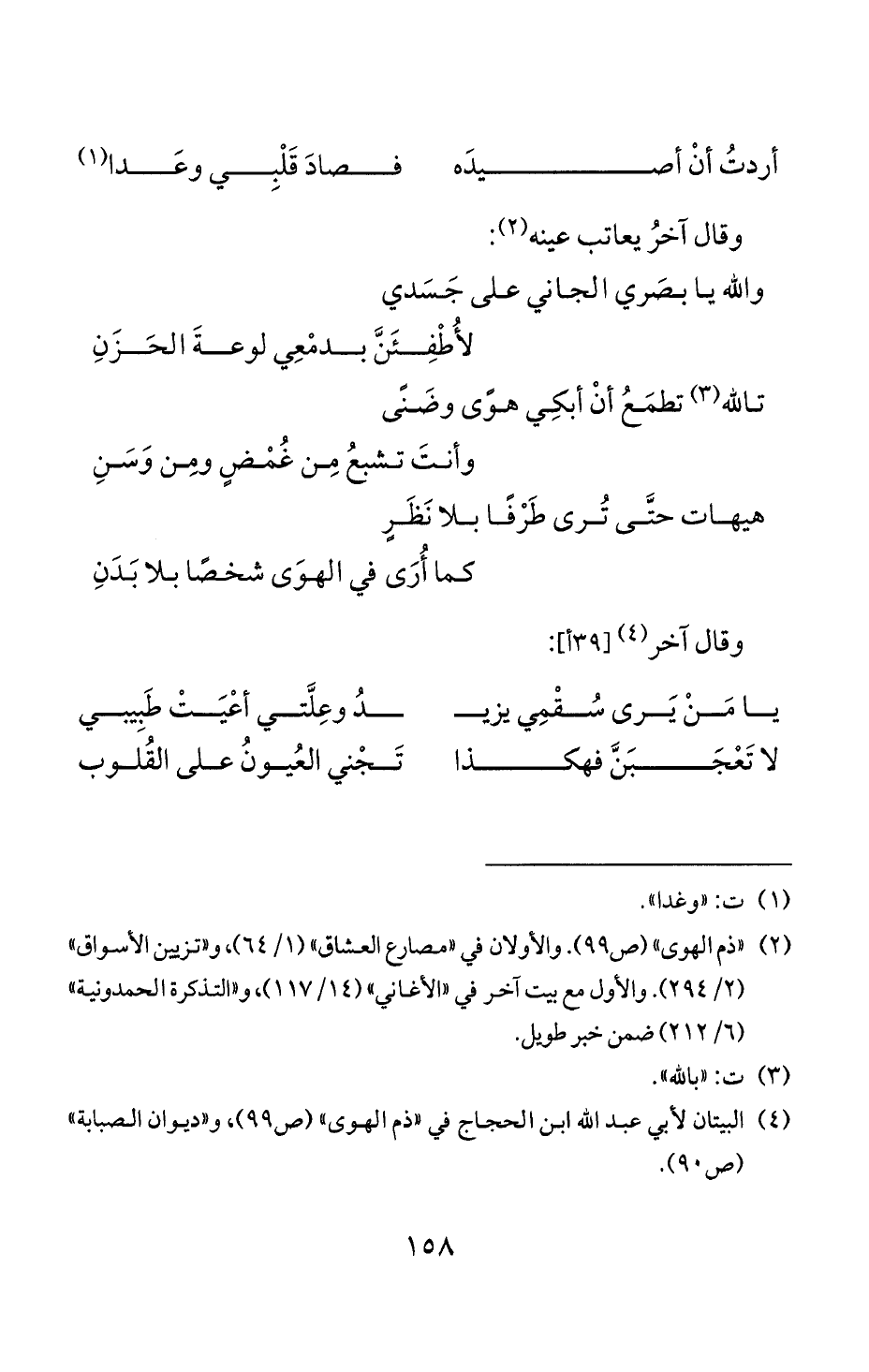 (4) البيتان لابي عبد الله ابن ا لحجاج في "ذم الهوى " (ص 99)، و" ديوان الصبابة"