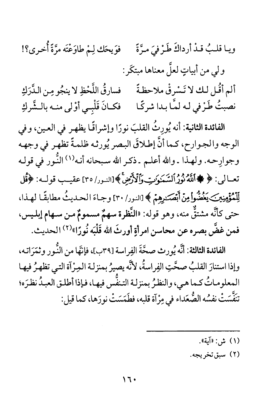 الفائدة الثالثة: أئه يورث صحة الفراسة [39 ب]، فانها من النور وثمراته،