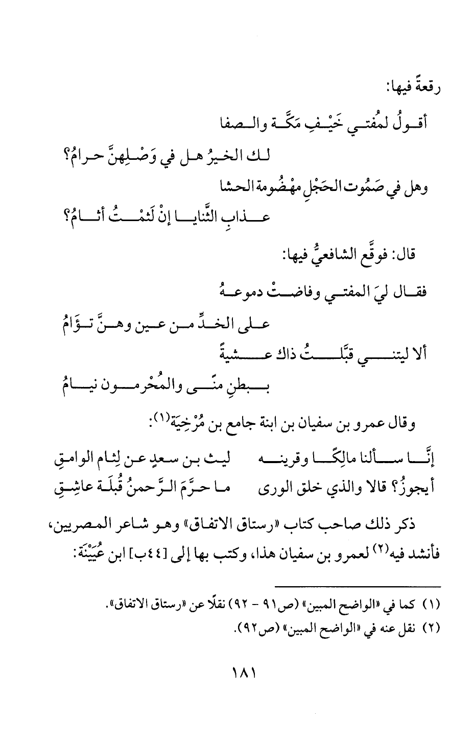 فأنشد فيه (2) لعمرو بن سفيان هذا، وكتب بها إلى [44 ب] ابن عيينة: