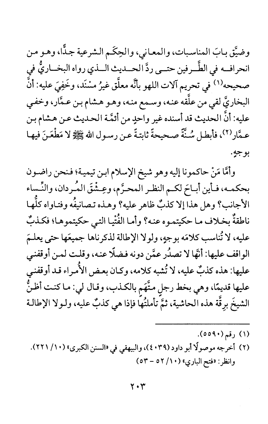 صحيحه (1) في تحريم الات اللهو بانه معلق غير مسند، وخفي عليه: أ ن