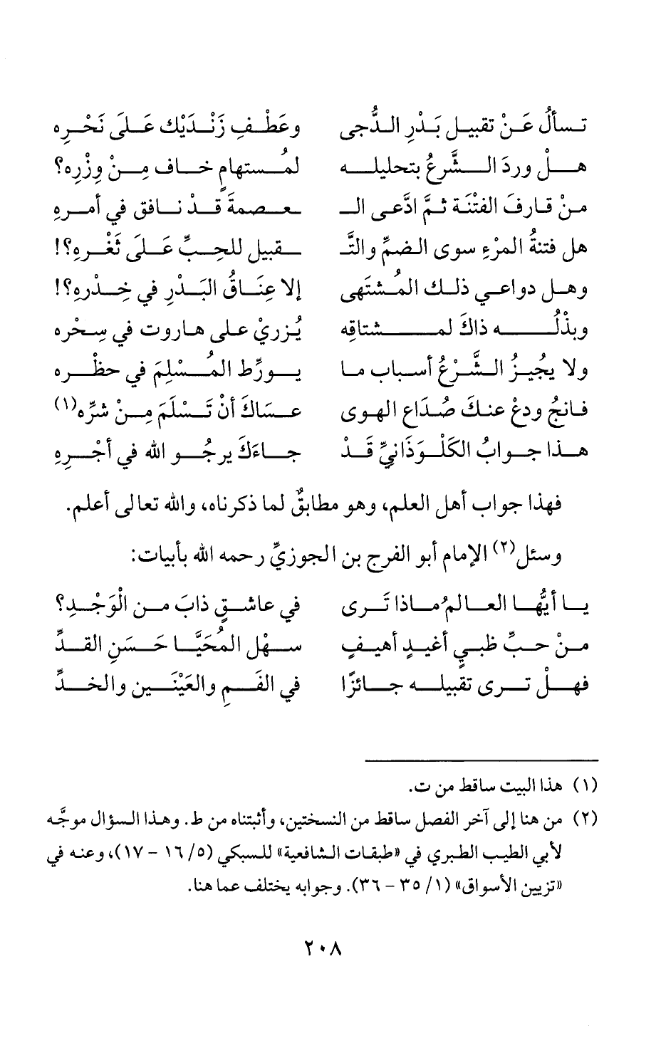 وسئل (2) الإمام أبو الفرج بن ا لجوزي رحمه الله بأبيات: