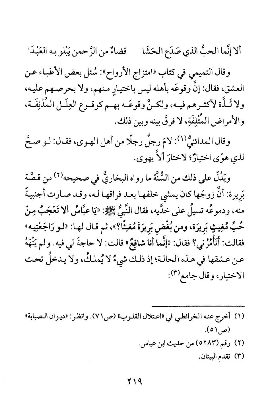 (1) اخرج عنه الخرائطي في "اعتلال القلوب " (ص 71). وانظر: " ديوان الصبابة"