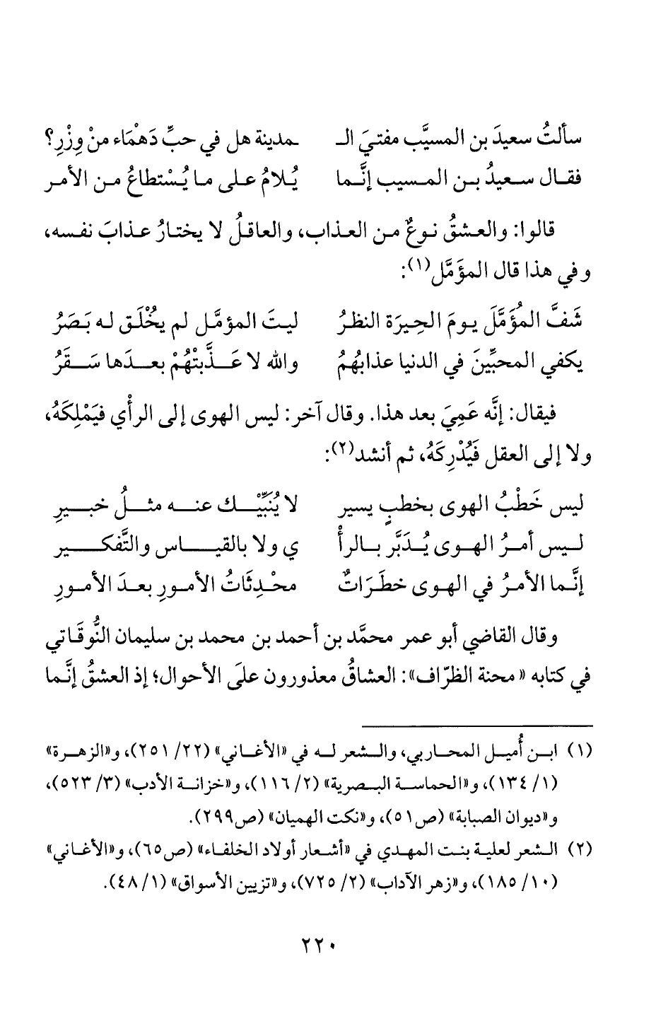 في كتابه " محنة الظراف ": العشاق معذورون على الاحوال؛ إذ العشق إنما