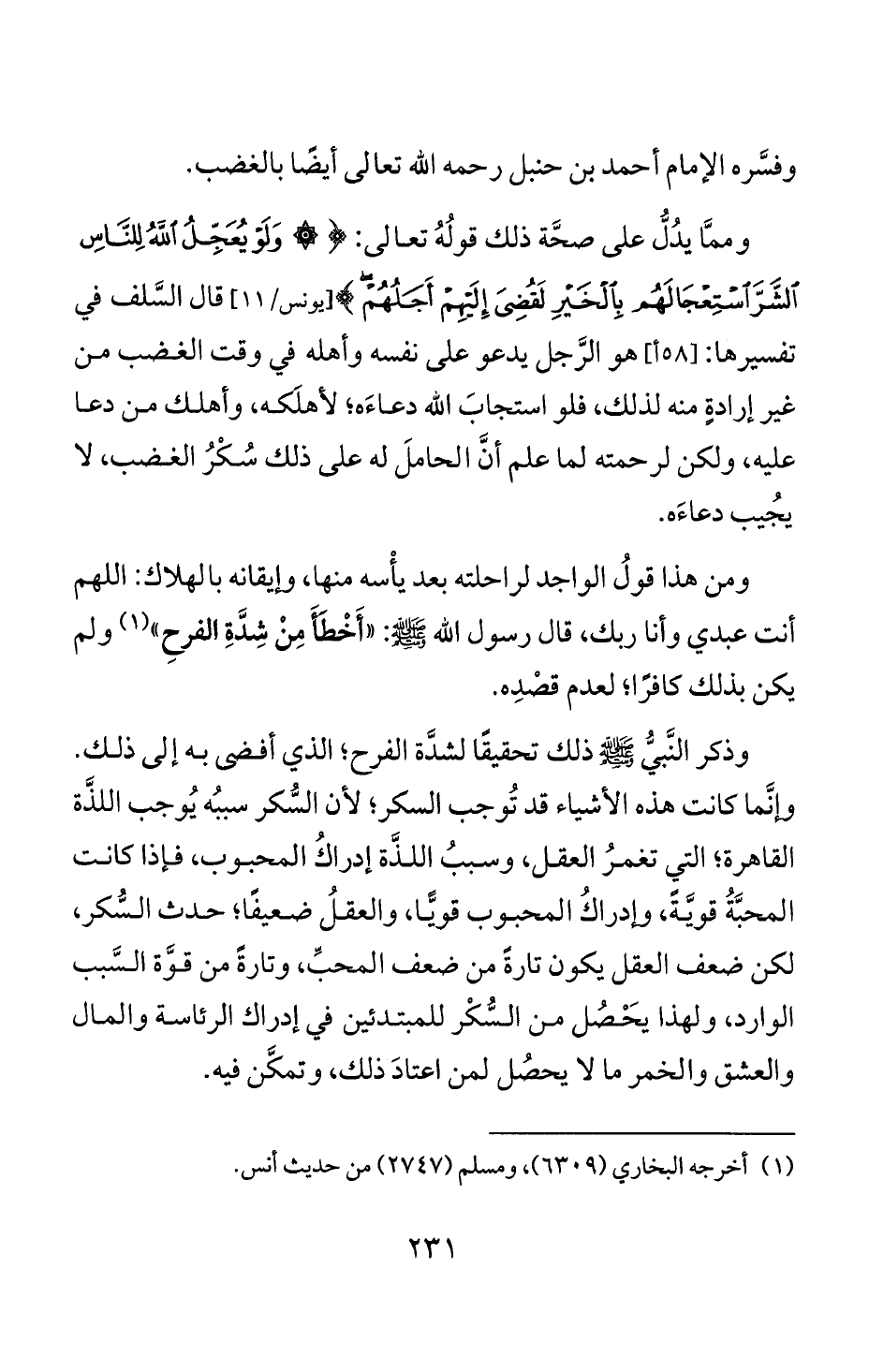 غير إرادة منه لذلك، فلو استجاب الله دعاءه؛ لاهلكه، و هلك من دعا