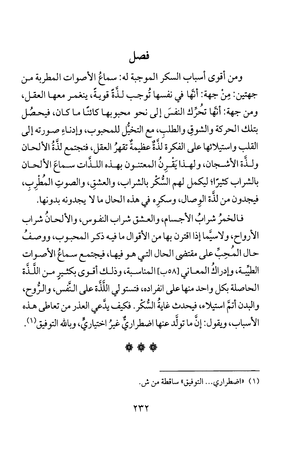 ومن أقوى أسباب السكر الموجبة له: سماع الاصوات المطربة من