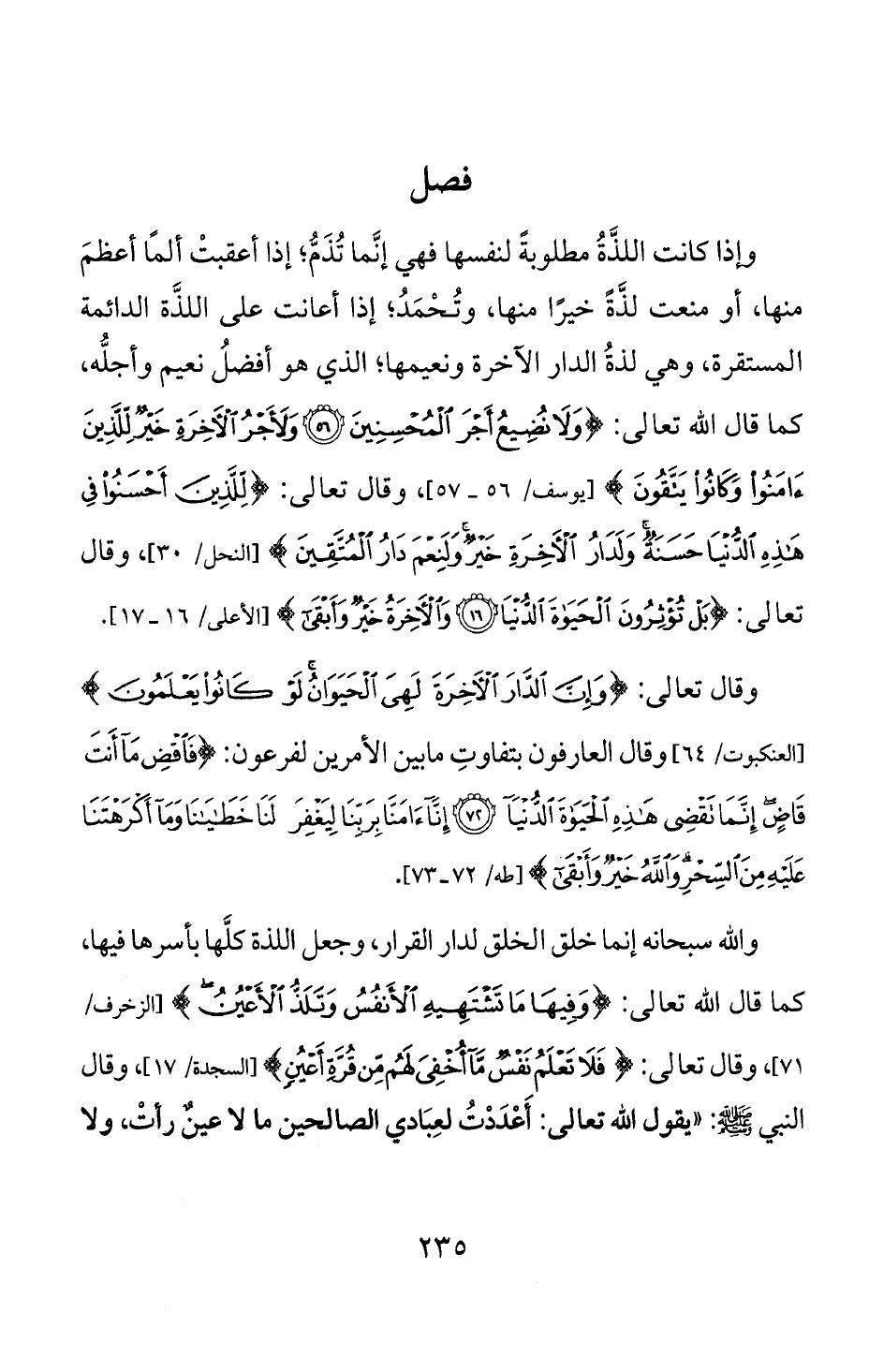 كما قال الله تعالى: <وفيها ما لتثتتهيه الائمس وتلذ الأجمت) [الزخرف/
