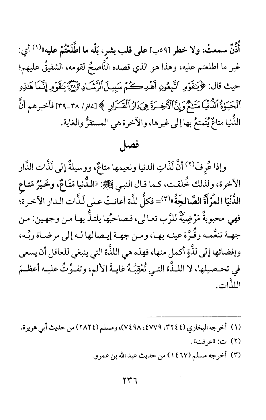 واذا عرف (2) أن لذات الدنيا ونعيمها متاع، ووسيلة إلى لذات الدار