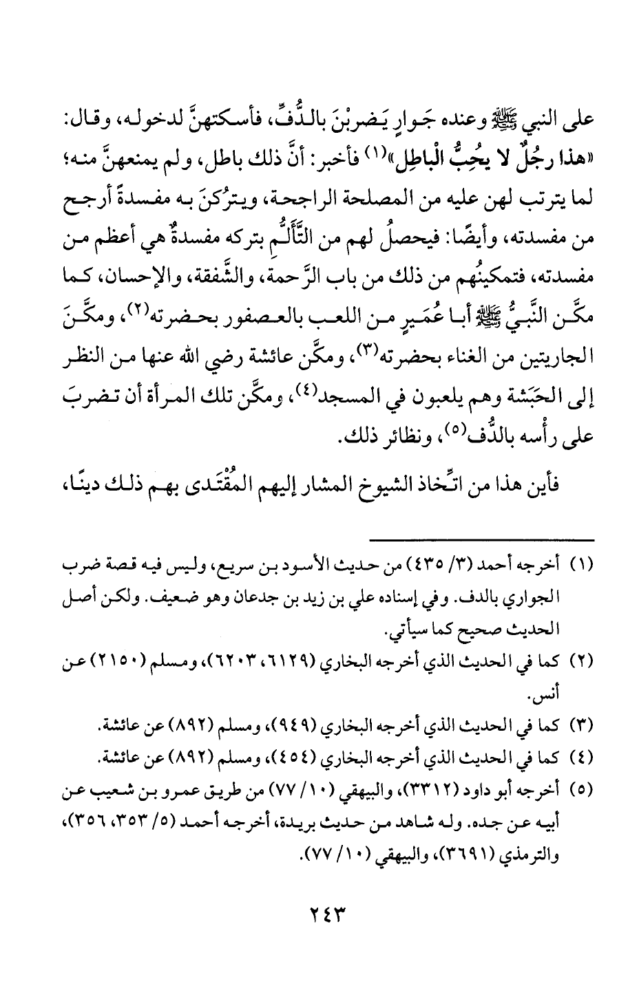 ا لجواري بالدف. وفي إسناده علي بن زيد بن جدعان وهو ضعيف. ولكن اصل