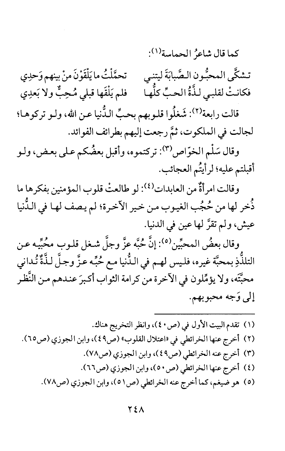 وقال بعض المحبين (5): إن حبه عز وجل شغل قلوب محبيه عن