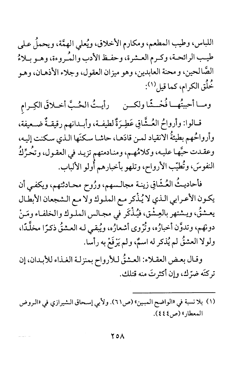وقال بعض العقلاء: العشق للأرواح بمنزلة الغذاء للأبدان، إ ن
