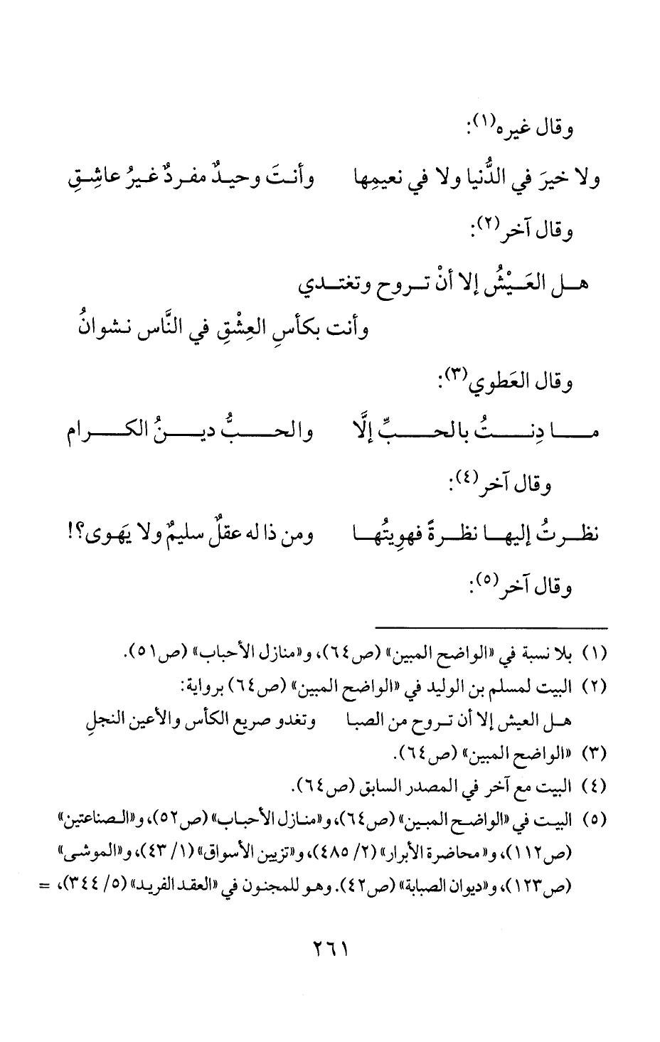 (5) البيت في " الواضح المبين " (ص 4 6)، و" منازل الاحباب" (ص 2 5)، و" الصناعتين"