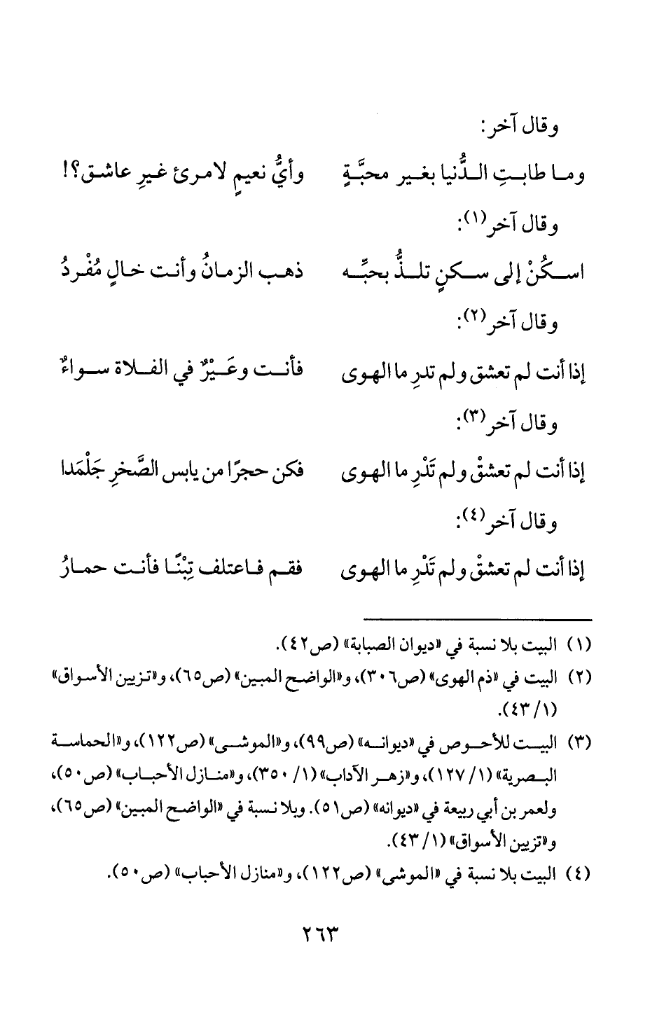 (4) البيت بلا نسبة في "الموشى " (ص 122)، و"منازل الاحباب" (ص 0 5).