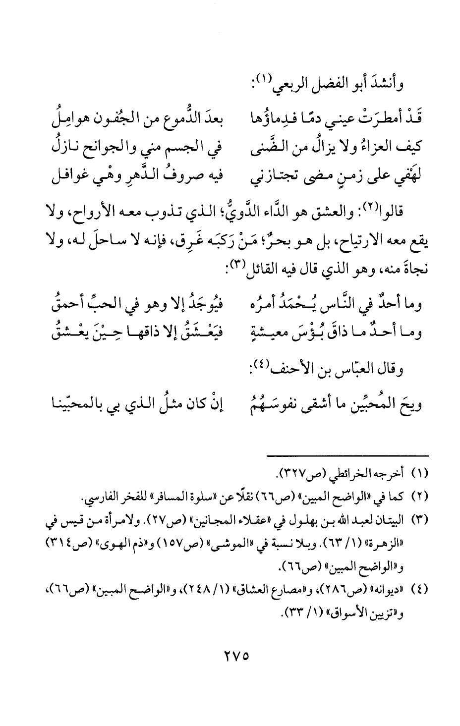 (4) " ديوانه " (ص 286)، و" مصارع العشاق " (1/ 48 2)، و" الواضح المبين " (ص 66)،