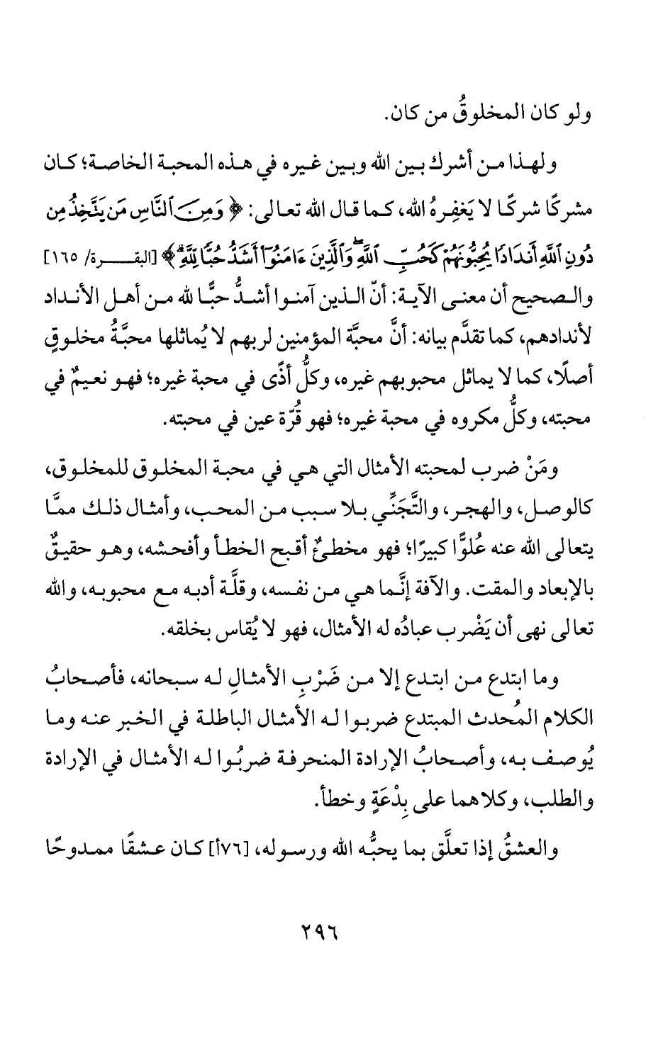 ومن ضرب لمحبته الامثال التي هي في محبة المخلوق للمخلوق،