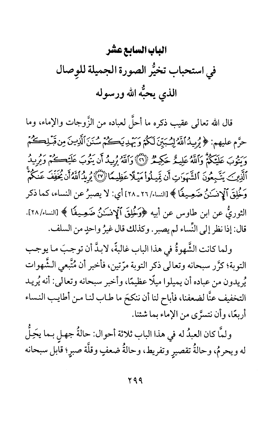 ولما كانت الشهوة في هذا الباب غالبة، لابد ن توجب ما يوجب