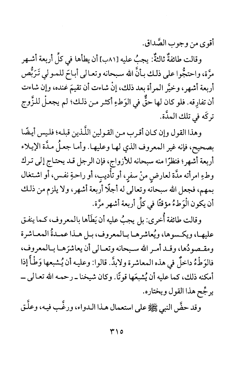 وقالت طائفة أخرى: بل يجب عليه أن بطاها بالمعروف، كما ينفق