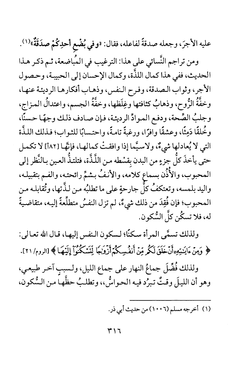 ولذلك تسمى المراة سكنا؛ لسكون النفس إليها، قال الله تعالى: