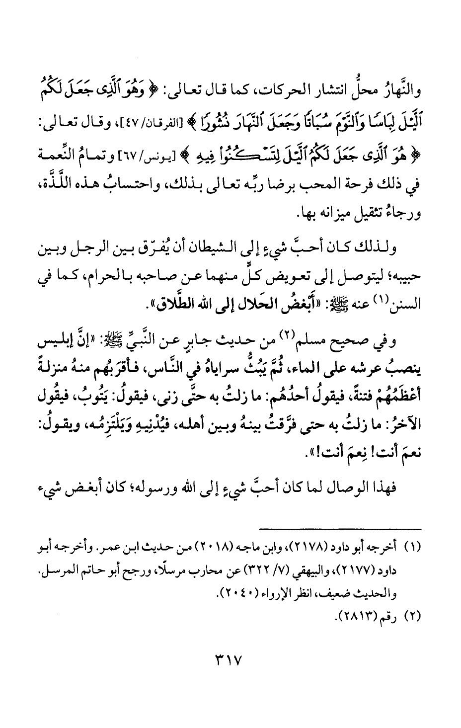السنن (1) عنه! ي!: " ابغض الحلال إلى الله الطلاق ".