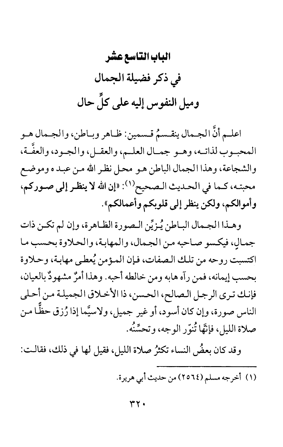 والشجاعة، وهذا ا لجمال الباطن هو محل نظر الله من عبد 5 وموضع