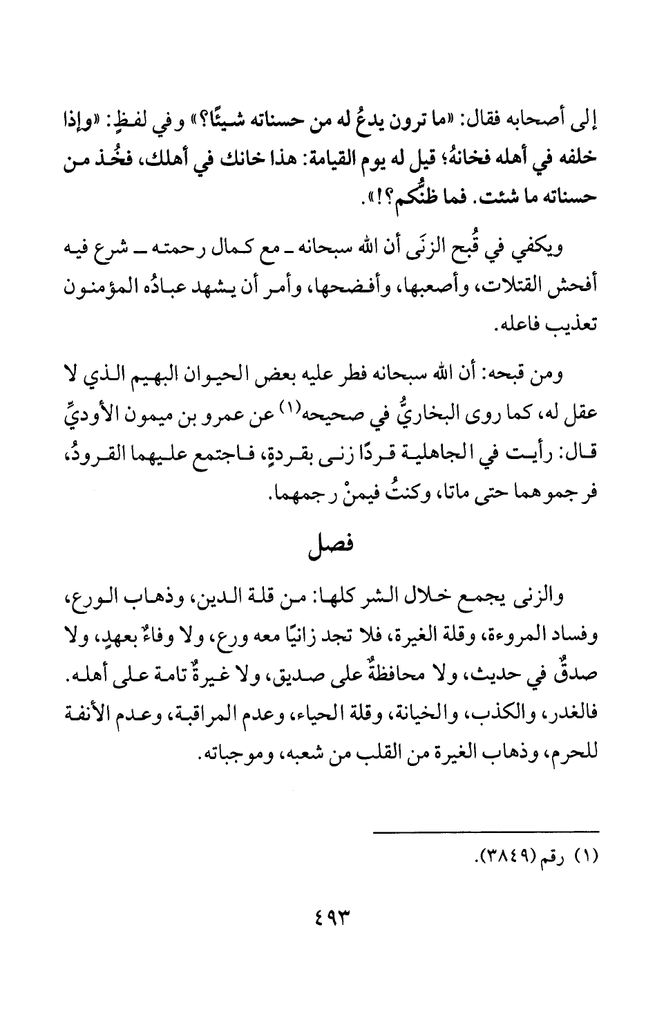 والزنى يجمع خلال الشر كلها: من قلة الدين، وذهاب الورع،