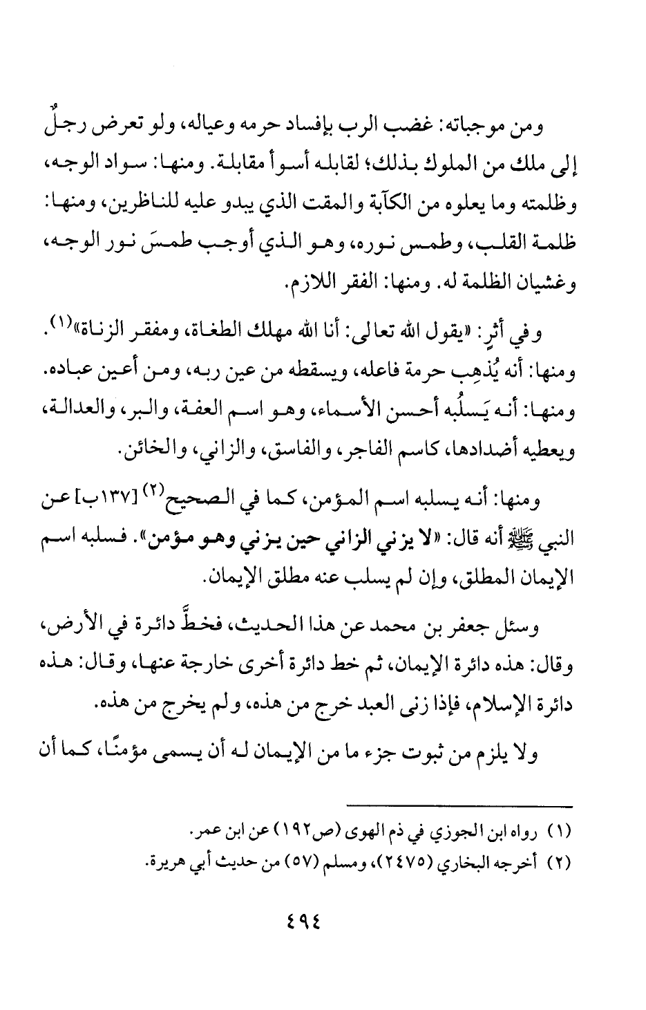 دائرة الاسلام، فاذا زنى العبد خرج من هذه، ولم يخرج من هذه.