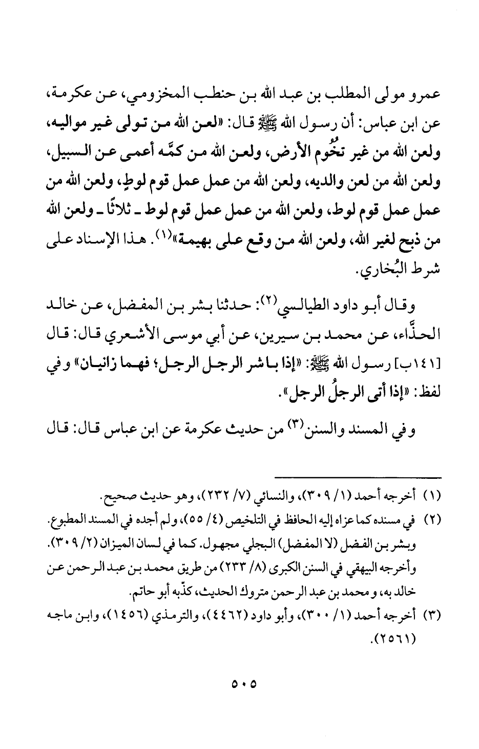 ولعن الله من لعن والديه، ولعن الله من عمل عمل قوم لوط، ولعن الله من