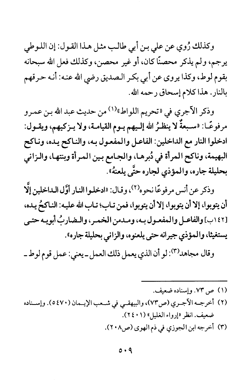 وذكر الاجري في " تحريم اللواط " (1) من حديث عبد الله بن عمرو