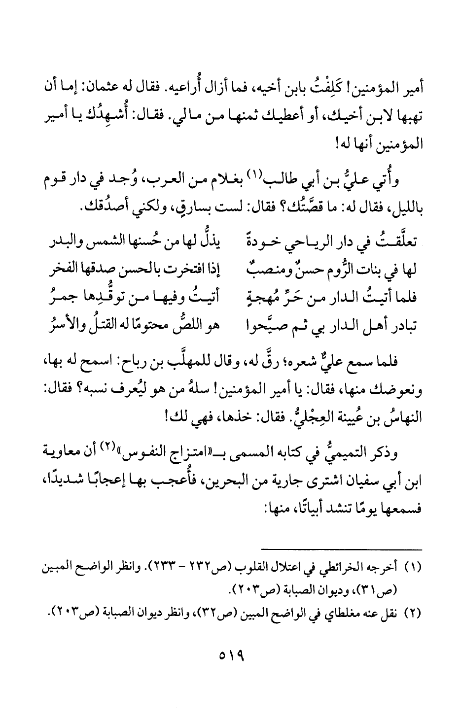 (1) اخرجه الخرائطي في اعتلال القلوب (ص 232 - 233). وانظر الواضح المبين