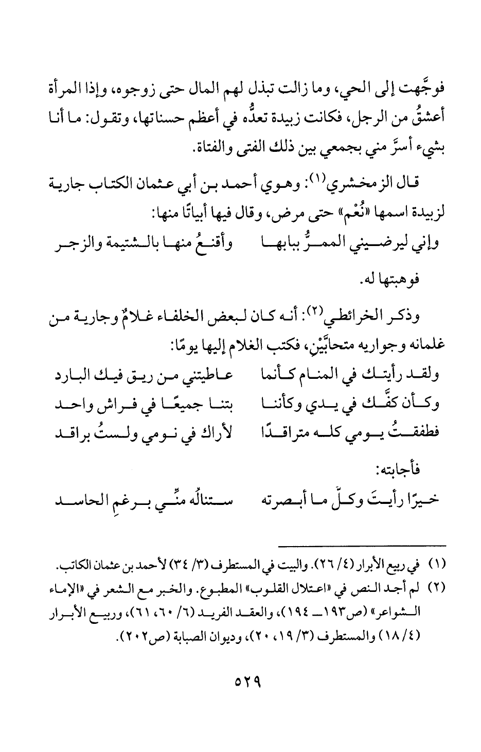 (2) لم أجد النص في " اعتلال القلوب " المطبوع. والخبر مع الشعر في " الاماء